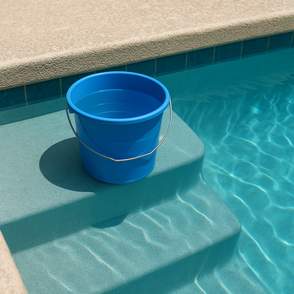 3. Place a bucket on a pool step, and fill it with pool water so the water level inside the bucket matches the water level outside (in the pool).